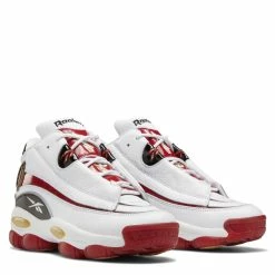 Reebok Men’s Instapump Fury Zone Mid Basketball Shoes In Classic White/Vector Red/Vector Blue