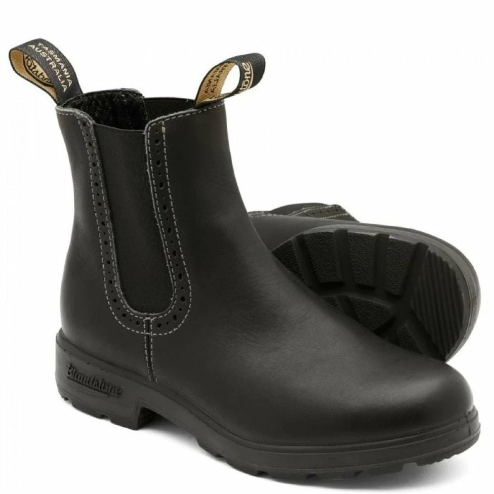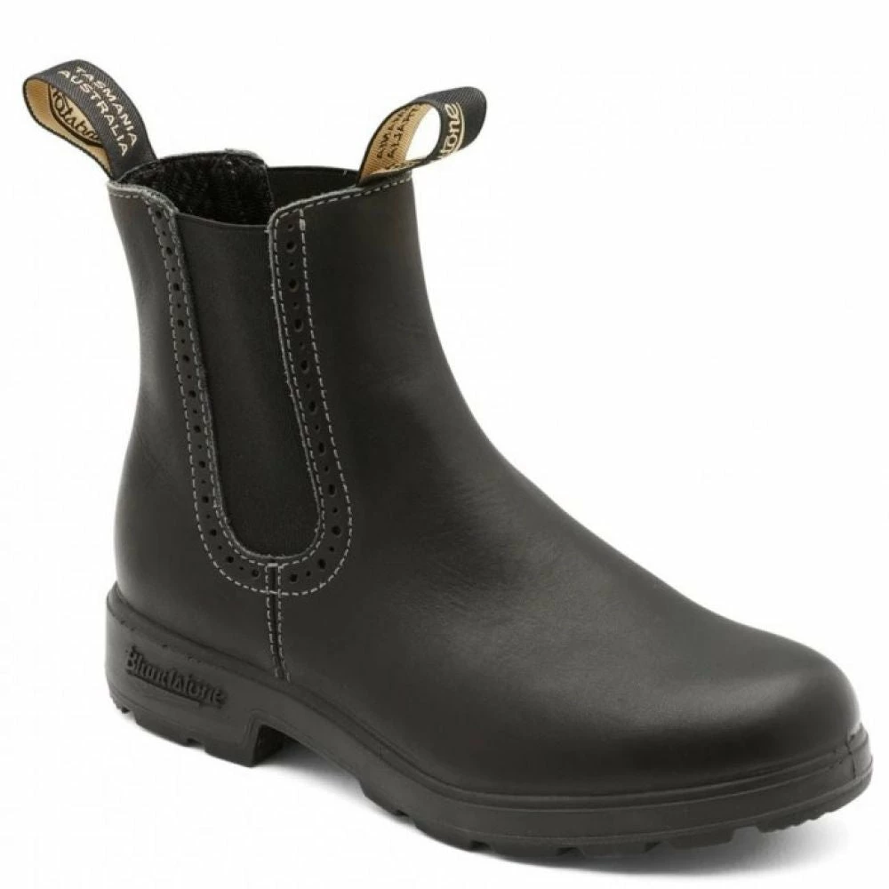 Blundstone 1448 Black Chelsea in Black is cut slightly higher and dressed up with a touch of decorative broguing. Crafted for a woman’s foot, with additional ankle support and coverage against the elements. Total all-season, bring-it-on comfort for town and country.