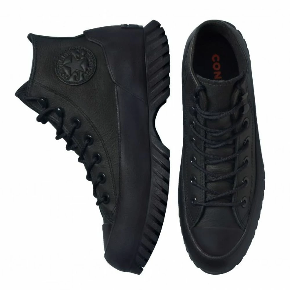 Converse Chuck Taylor All Star Lugged are back like never before. Now with a taller rubber sidewall for added protection and bold, chevron-inspired tread for style and stability. Waterproof leather and a gusseted tongue join forces to keep the elements out, while a soft fleece lining and EVA sockliner help to keep you comfortable. Hiker-inspired elements like rounded laces and speed hooks complete the outdoor-ready look on classic and Earthy neutrals