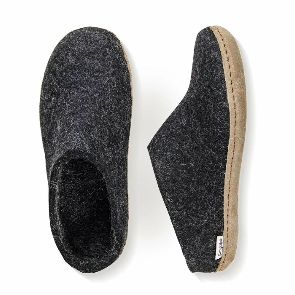 Glerups Open Heel Leather Sole In Charcoal