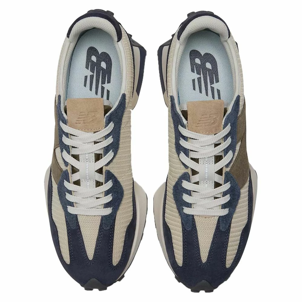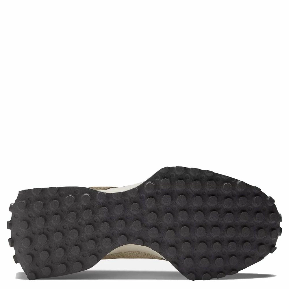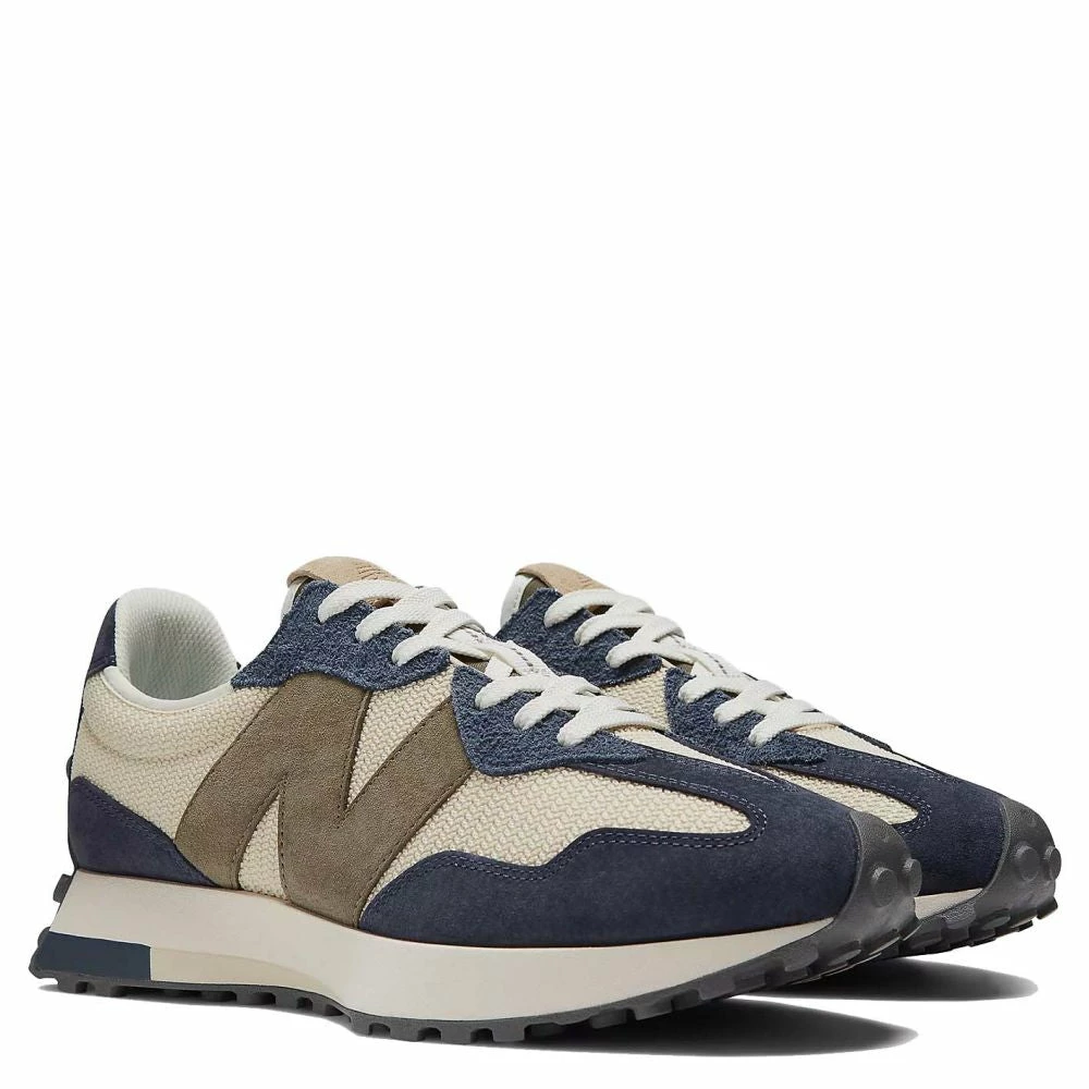 From the rollout of technological advancements like improved cushioning and specialized outsole construction to the introduction of the iconic ‘N’ logo, the 1970s were a pivotal time in New Balance’s history. The New Balance Men’s 327 in Beige with NB Navy boldly reimagines the brand’s running heritage, with a contemporary-minded reworking of classic design elements that, individually, would be considered hallmarks of ‘70s simplicity. With an angular reworking of the aerodynamically minimalist wedge silhouette, asymmetrically applied, oversized ‘N’ branding, and a wraparound, trail-inspired lug outsole, the 327 sheds new light on the ‘70s as an era of innovation.
