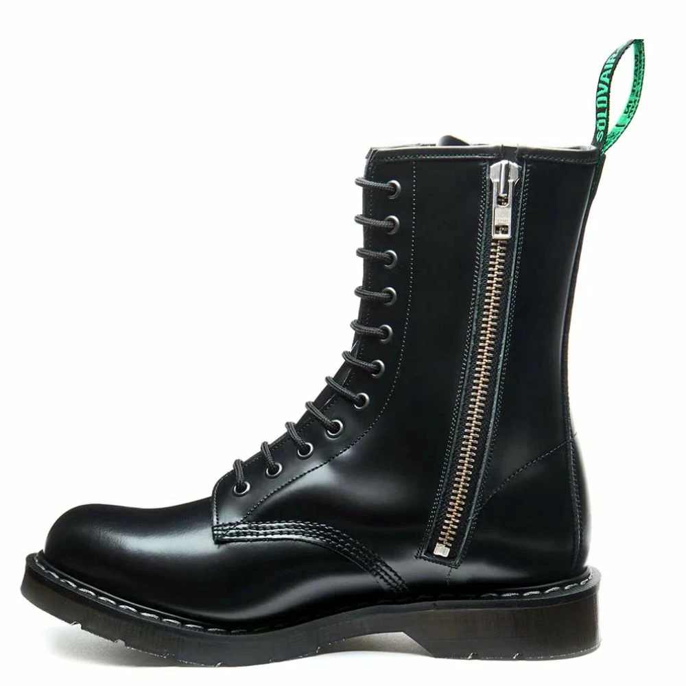 British made, the Solovair 11 Eye Zip Derby Boot in Black Hi-Shine is amongst the best quality footwear in the world. Combining over 130 years of traditional craftsmanship and tooling while using the latest technology and materials.